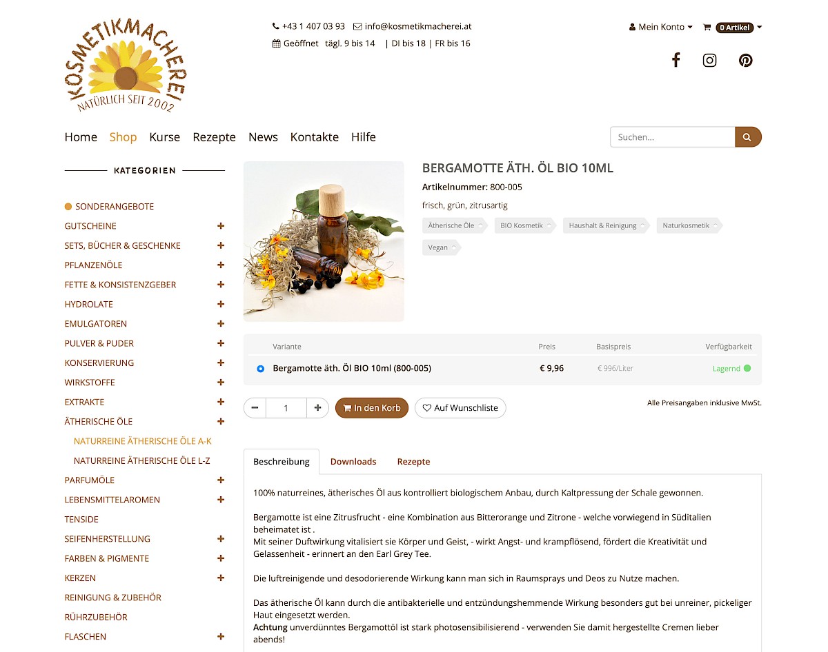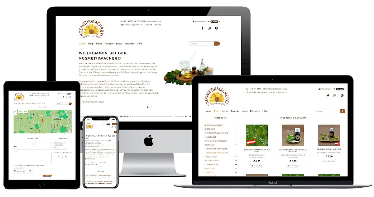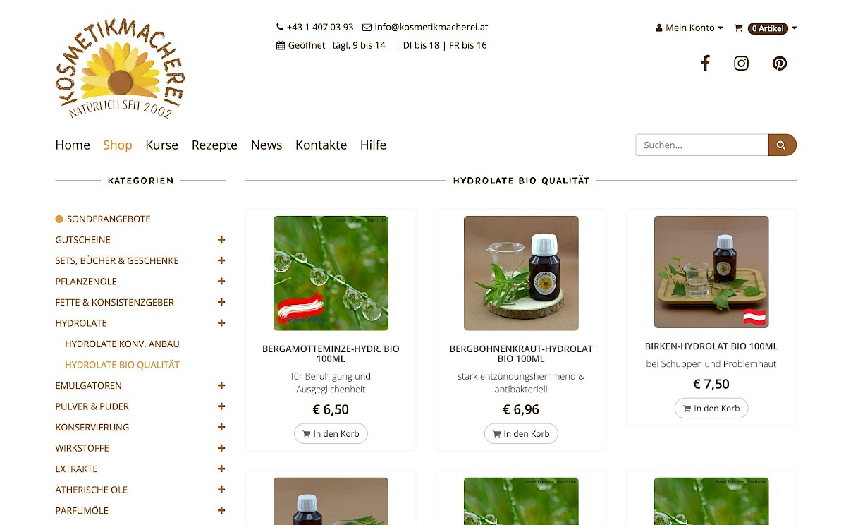 kosmetikmacherei.at presents the Vienna-based company Kosmetikmacherei, which specializes in the manufacture and sale of raw materials, tools, and ingredients for homemade cosmetics. In addition to an extensive web shop offering skincare and cosmetic raw materials, some of which are organic, the website also provides recipes, courses, and informative content on DIY cosmetics and small group workshops—from beginner courses to specialized mixing workshops. Visitors will also find the latest news, recipe suggestions, contact details, and company information that underscore the brand's personal and sustainable approach.